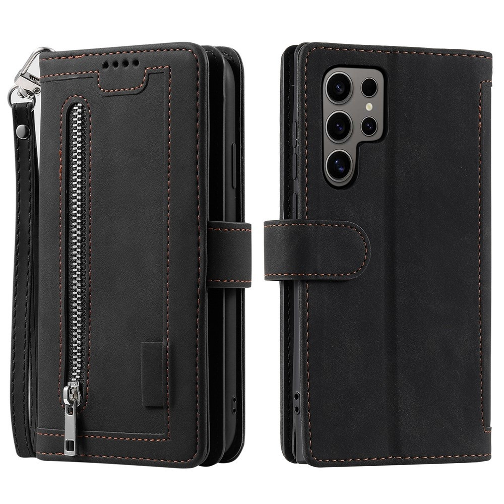 För Samsung Galaxy S26 Ultra 5G Fodral med Dragkedja och 9 Kortplatser i PU-läder