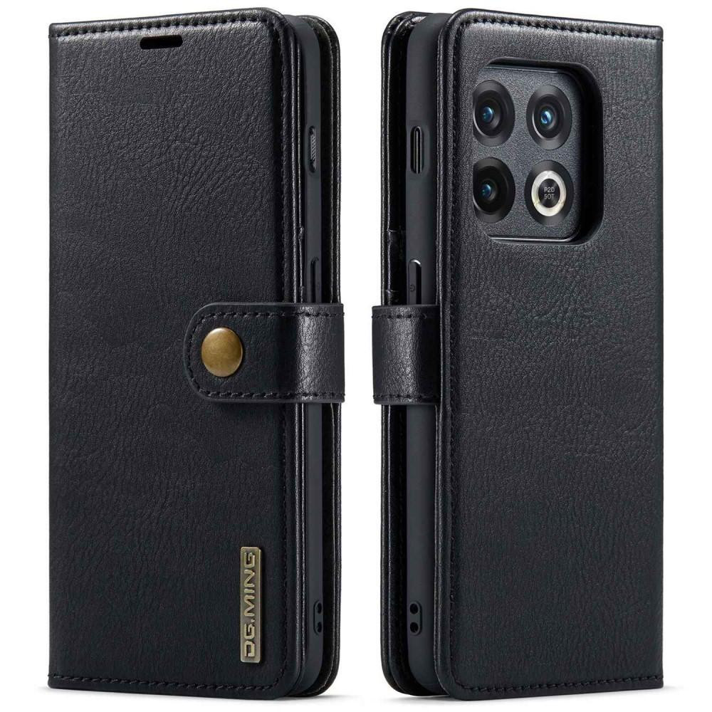 DG.MING Split läderfodral för OnePlus 10 Pro 5G, stötsäkert, avtagbart mobiltelefonfodral med plånboksställ - svart