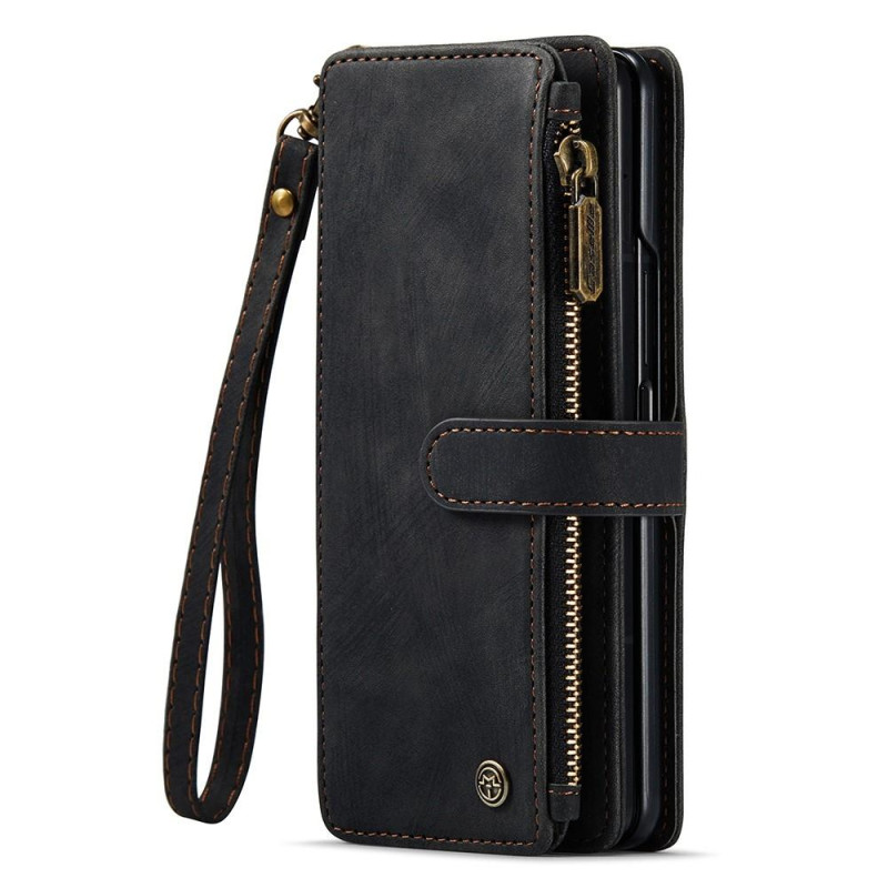 CASEME C30-serien för Samsung Galaxy Z Fold3 5G Plånbok med dragkedja stötsäker PU-läder Flera kortplatser Stativ Telefonskal - Svart