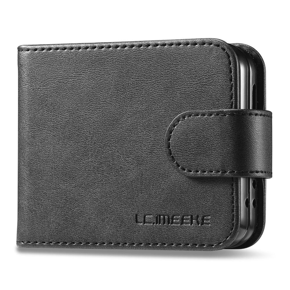 LC.IMEEKE För Samsung Galaxy Z Flip5 5G PU Läder Telefonfodral Korthållare Calf Texture Stand Cover - Svart Tillverkad av PU-läder av hög kvalitet + hård PC-underdel, slitstark och tålig för långvarig användning