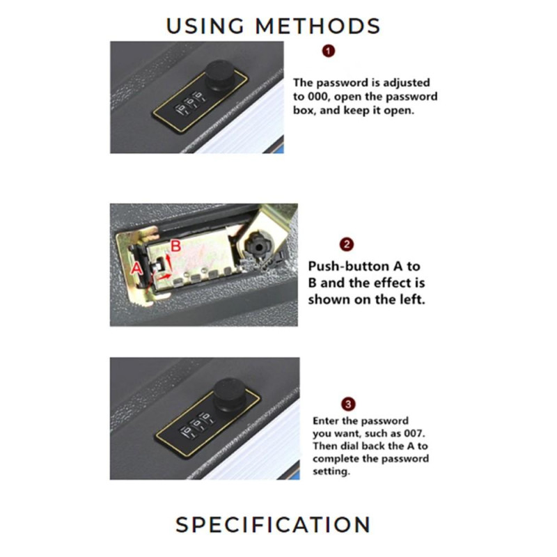 SÄKERHETSDESIGN: Skåp mycket lämplig för att spara mynt, bankkort, ID -kort och andra värdefulla personliga föremål. Säkerhetslådan innehåller en rostfri låda med överlappande kanter för extra säkerhet