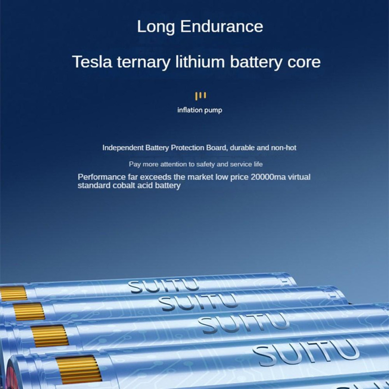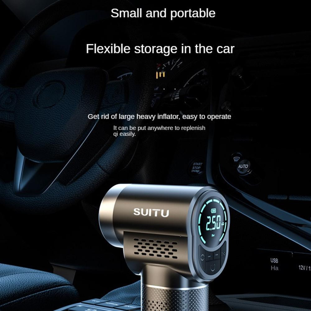SUITU ST-5518 sladdlös uppblåsbar bilpump Multifunktionell portabel minipump med belysning Snabb hastighet: Dubbelturbodesign, utrustad med en ny generation av ren kopparturbomotor, gashastighet ökad med 200%, lätt att fylla luften utan att vänta