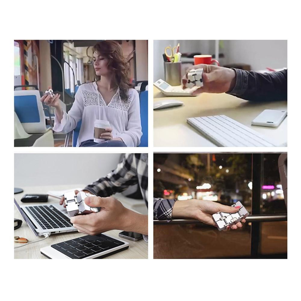 Aluminiumlegering Infinite Cube Metall Stressrelief Office Flip Cubic Creative Fingertop Decompression Block - Silver Det är inte svårt att spela, och det är inte lika organiserat som en vanlig kub, men det kan inte stoppas när det väl är vridet