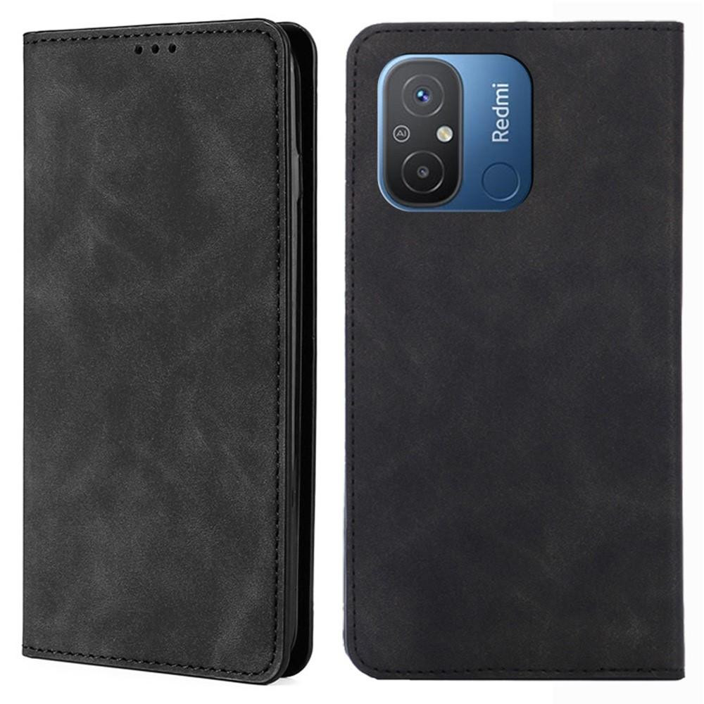 För Xiaomi Redmi 12C 4G-korthållare PU-läder Flip-fodral Skin-touch Telefonställsfodral - Svart Tillverkad av kvalitets PU-läder och TPU-material som är slitstarkt, smidigt och mjukt