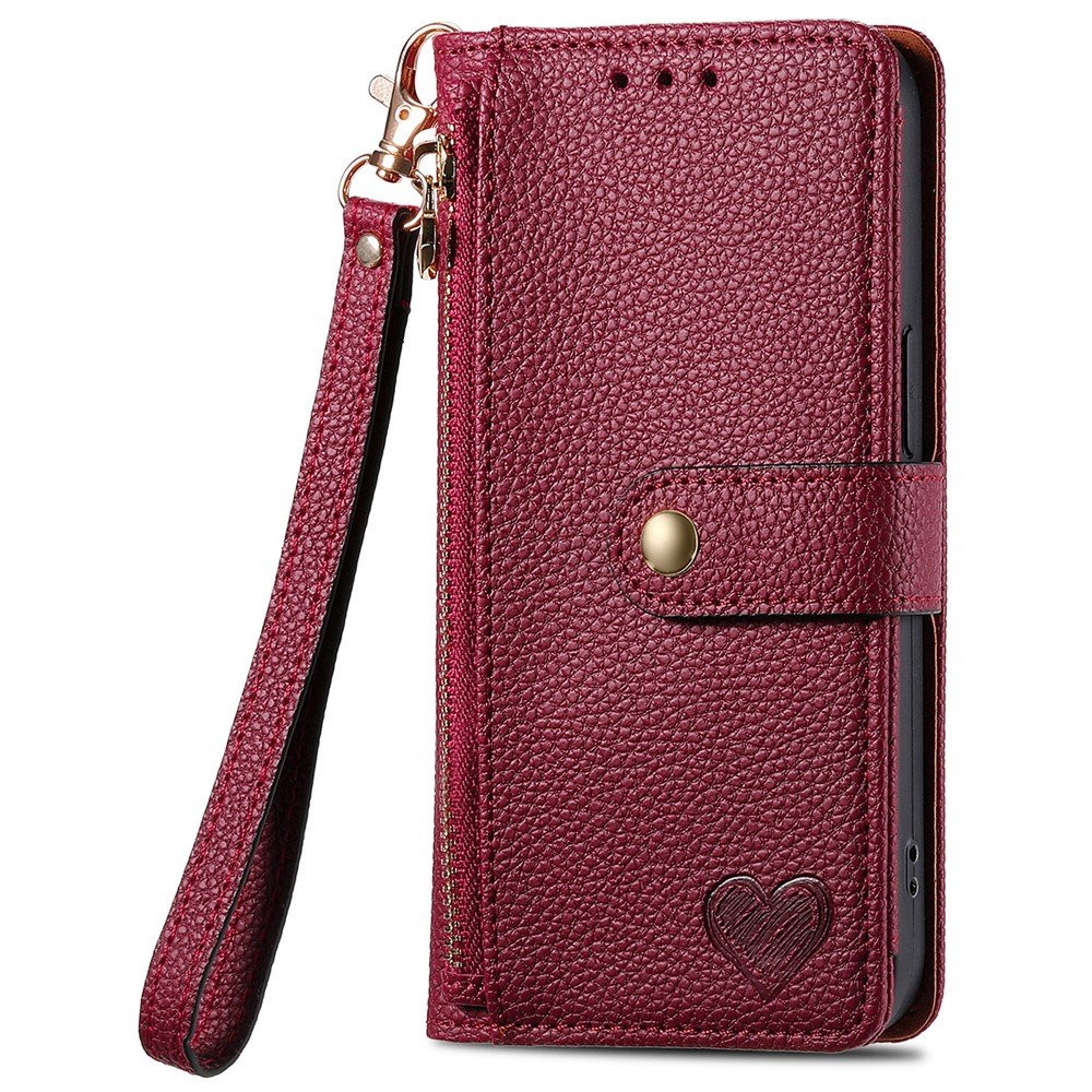 Tillverkat av PU-läder av hög kvalitet med flexibelt TPU-innerskal som ger en bekväm känsla i handen. Det präglade lilla hjärtmönstret och den hjärtformade dragkedjan ger en stilren design.