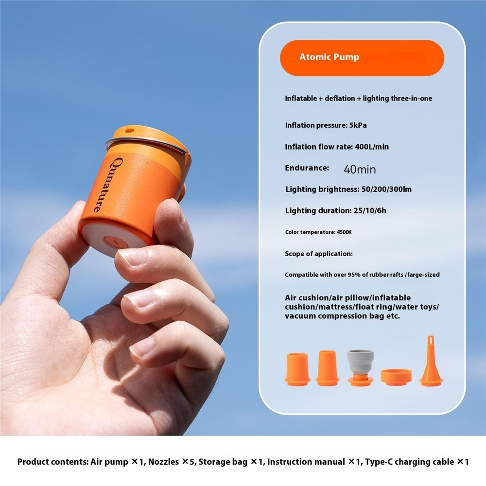 QUNATURE Mini Elektrisk Luftpump Magnetisk Camping Hängande Lampa Simring Luftmadrassinflator - Orange