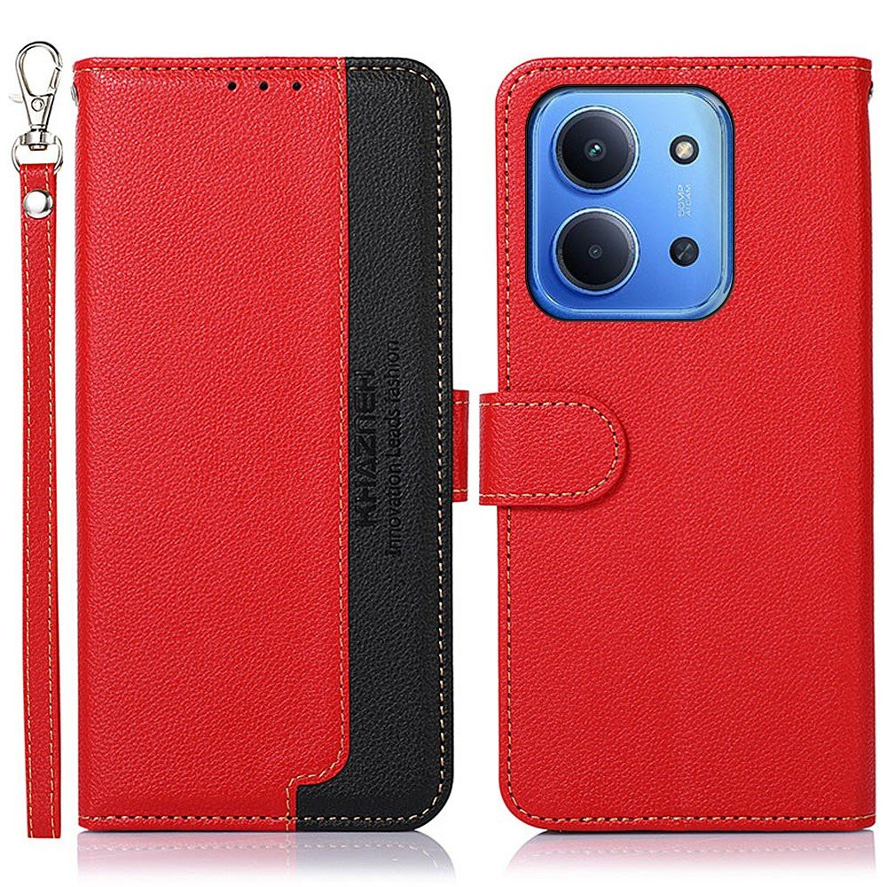 KHAZNEH För Xiaomi Redmi 15C Fodral RFID-blockerande telefonläderfodral - Röd/Svart
