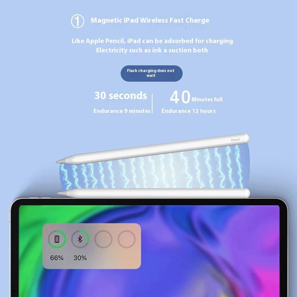 【Magnetisk trådlös laddning】Ladda enkelt din P10-penna genom att fästa den magnetiskt på en kompatibel iPad eller använda laddningskabeln för bekväm laddning.