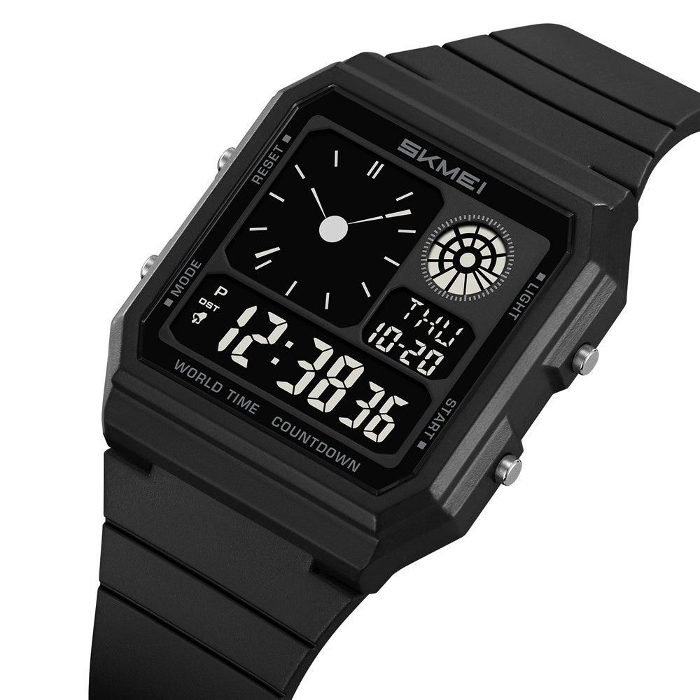 SKMEI 2347 Fyrkantig elektronisk klocka , multifunktionell sportklocka med EL-bakgrundsbelysning - Svart+Svart