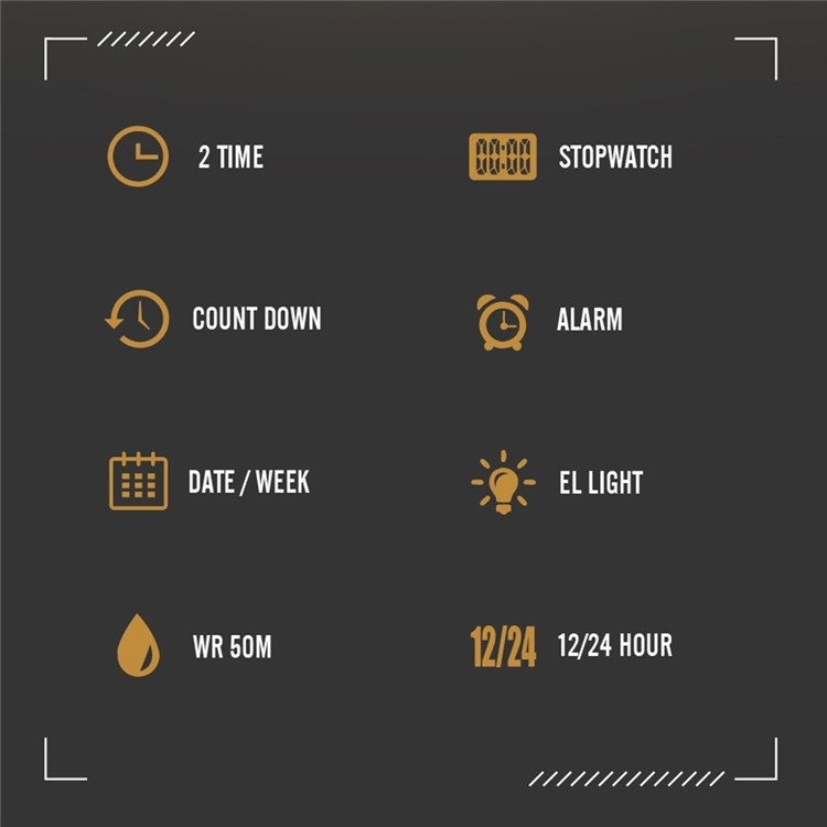 【Multifunktionell klocka】Utrustad med stoppur, datum, alarm, dagsvisning, timsignal, 12/24-timmarsformat och nedräkningstimer.