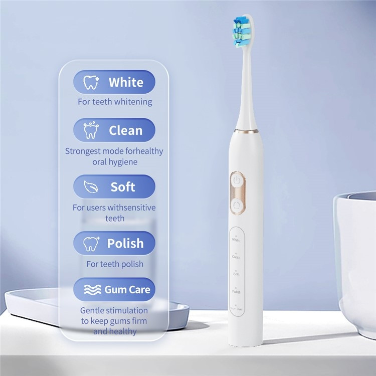Elektrisk Tandborste Mjuka Borstar Sonisk Eltandborste 8 Borsthuvuden - Vit