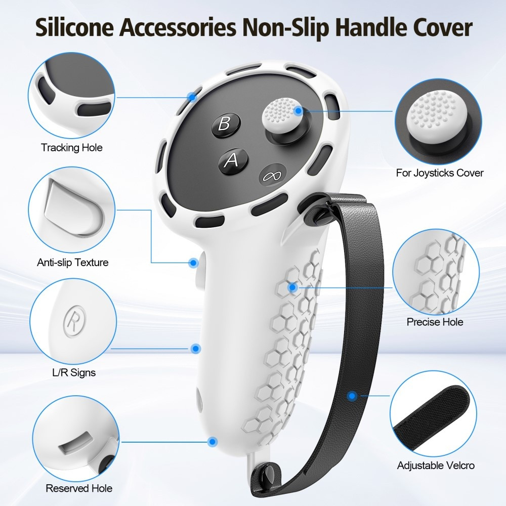 För Meta Quest 3S silikontillbehörsset med VR-headsetskydd / kontrollgrepp / ansiktsmask - Vit