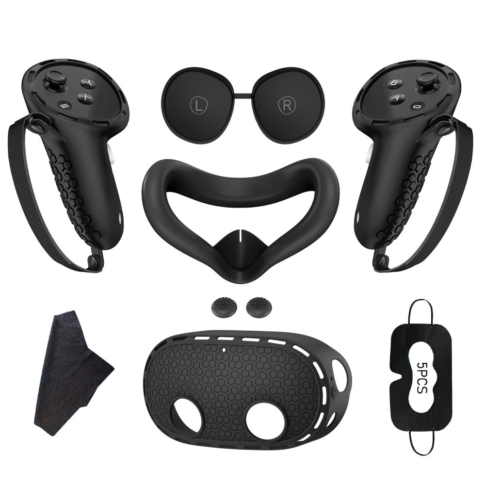 För Meta Quest 3S silikontillbehörsset med VR-headsetskydd / kontrollgrepp / ansiktsmask - svart