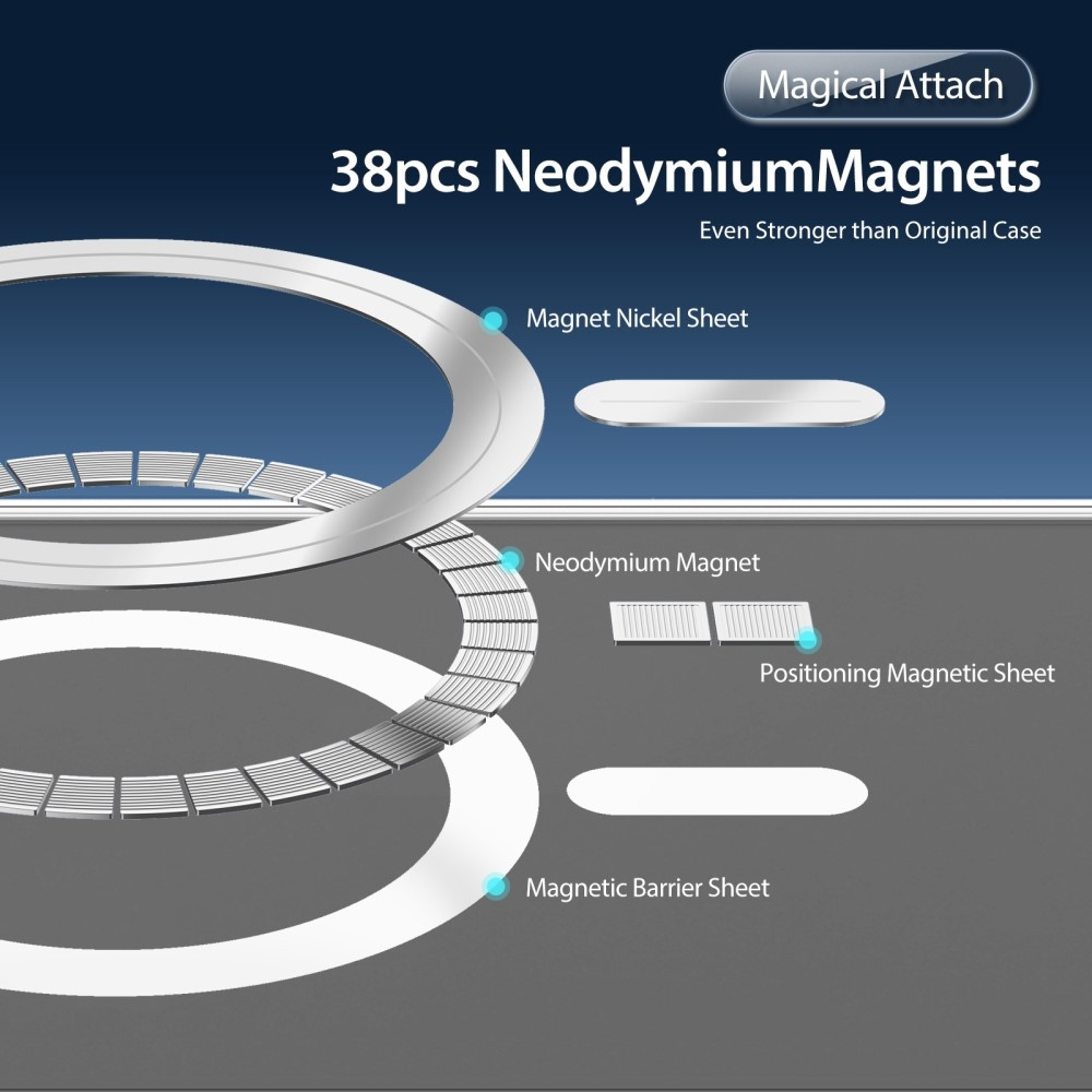 Kompatibel med MagSafe Tillverkad av 38 stycken neodymmagneter den inbyggda magnetringen kan förstärka den magnetiska anslutningen för att vara kompatibel med MagSafe-laddning