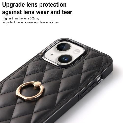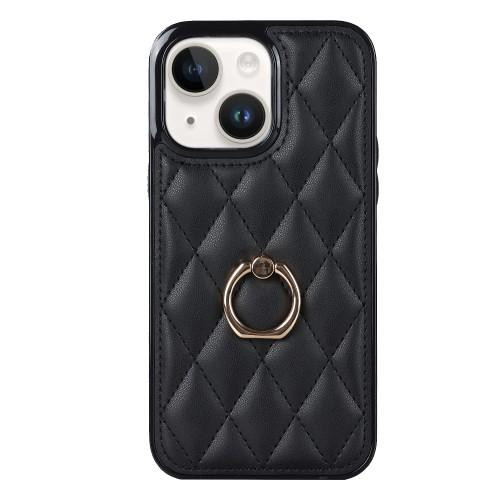iPhone 14 Rhombus Grid Mönster Skal FingerRing - Svart
