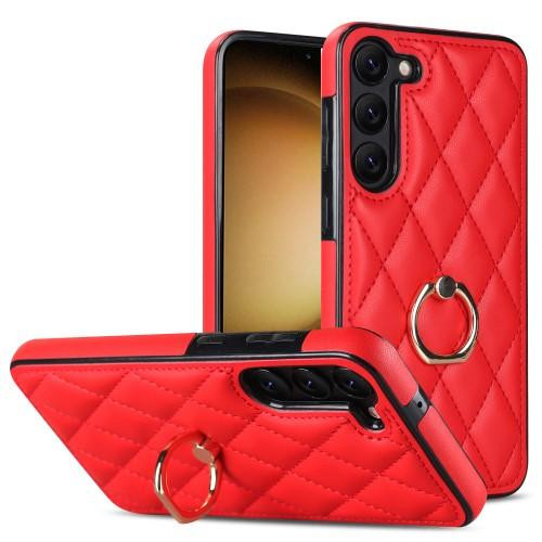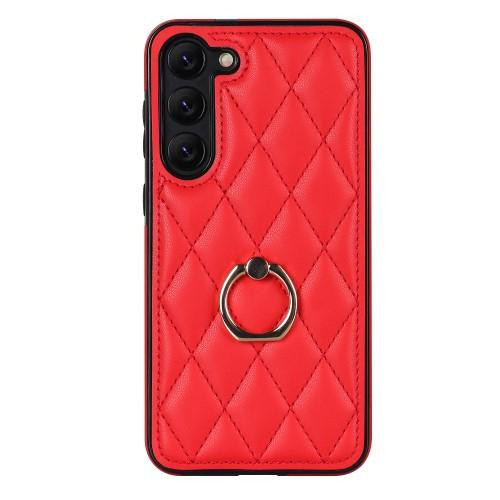 Samsung Galaxy S23 Rhombus Grid Mönster Skal FingerRing - Röd