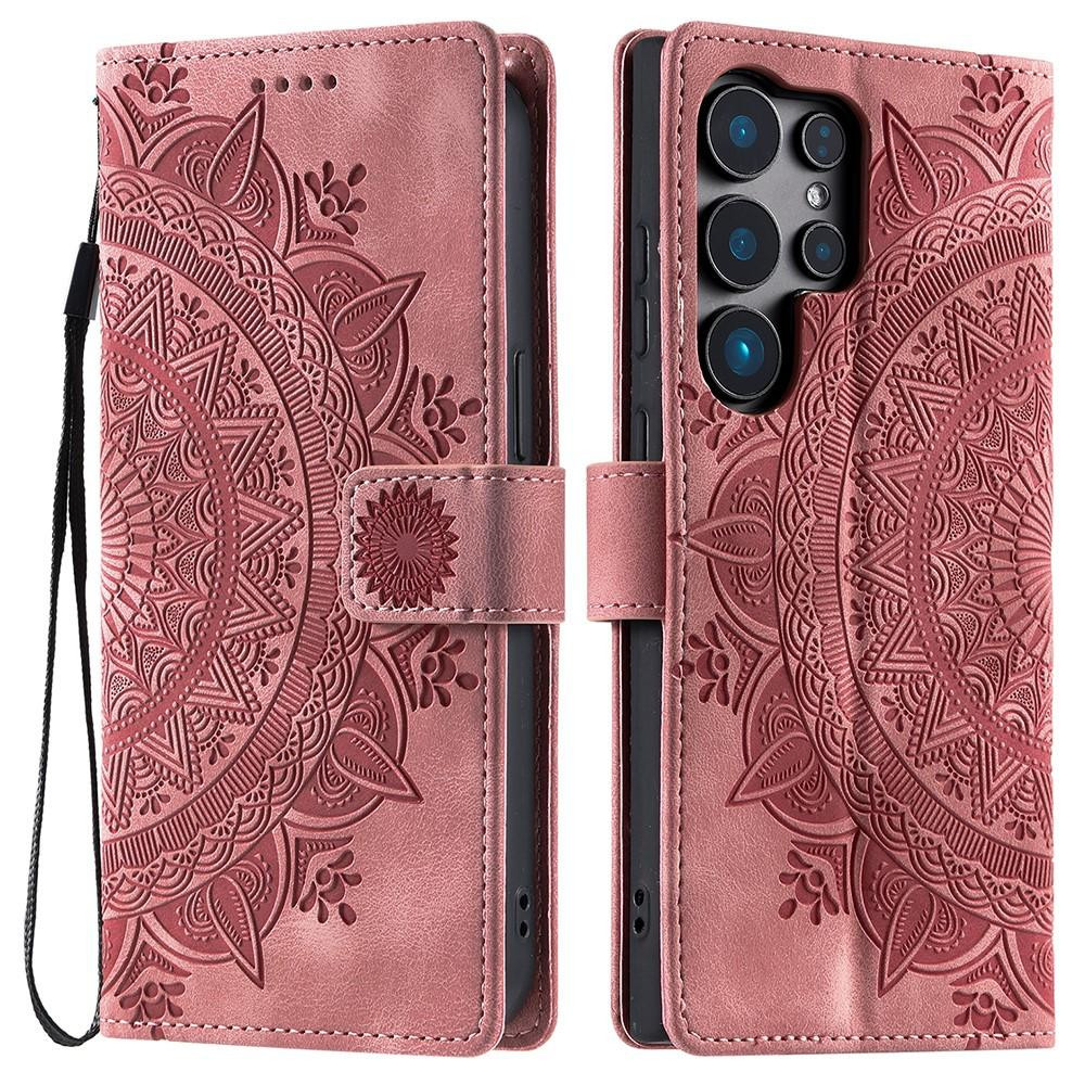 För Samsung Galaxy S25 Ultra plånboksfodral PU-läder telefonfodral Mandala blommönster