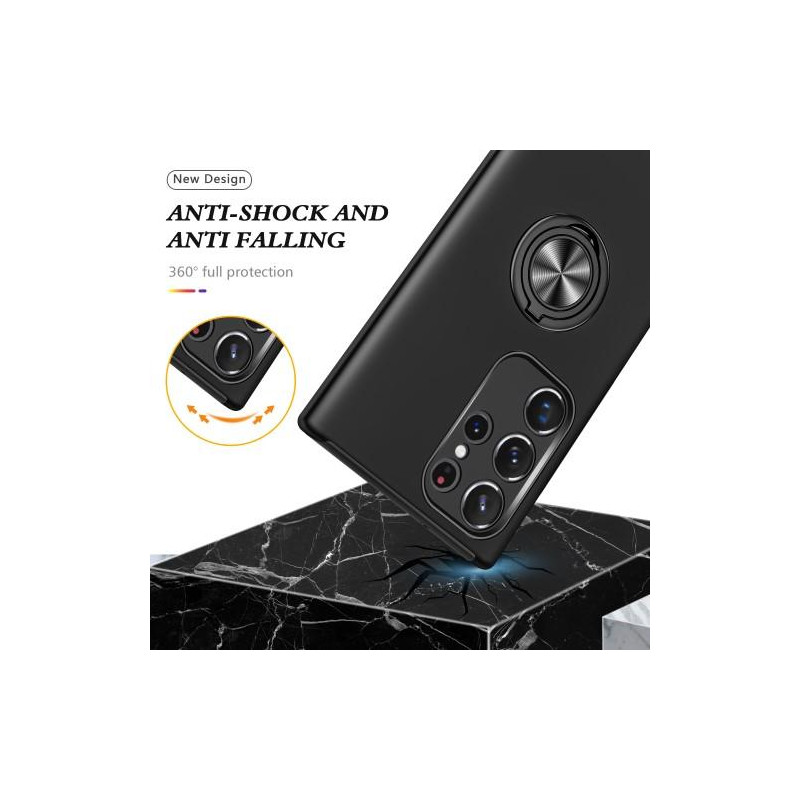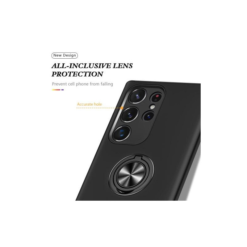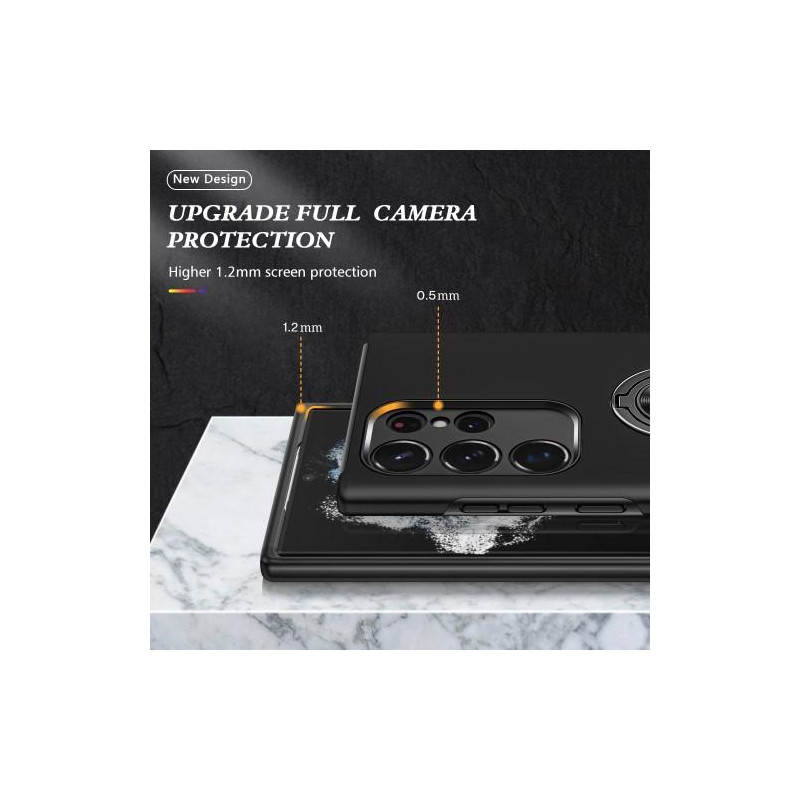 Hybridtelefonfodral heltäckande med ringformad kickstandsdesign för Samsung Galaxy S23 Ultra - Svart
