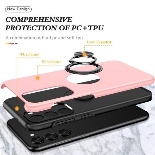 Hybridtelefonfodral heltäckande med ringformad kickstandsdesign för Samsung Galaxy S23+ - Rosa