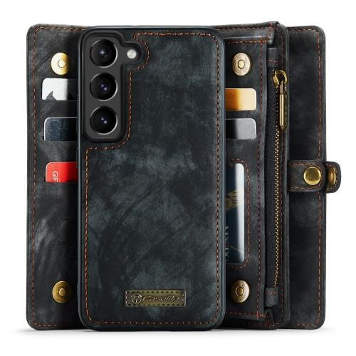 CASEME 008-serien för Samsung Galaxy S23 Multifunktionellt PU-läder hopfällbart stativfodral Avtagbart plånboksfodral med magnetisk dragkedja - svart Tillverkad av retrostil PU-läder + TPU-material, hög kvalitet och tålighet. Löstagbar 2-i-1-design, läderöverdrag och inre läderbelagd TPU-hård väska absorberas tillsammans av stark magnetism. Flera plånbokskortplatser för att ta med dina kreditkort och busskort bekvämt. Dragkedja stängs kassafack, bär lite pengar eller din hörlur med telefonen säkert. Magnetisk stängning och snäpplås ger en säker nivå. Skydda din telefon mot dagliga skador och bär dina tillhörigheter med stil.