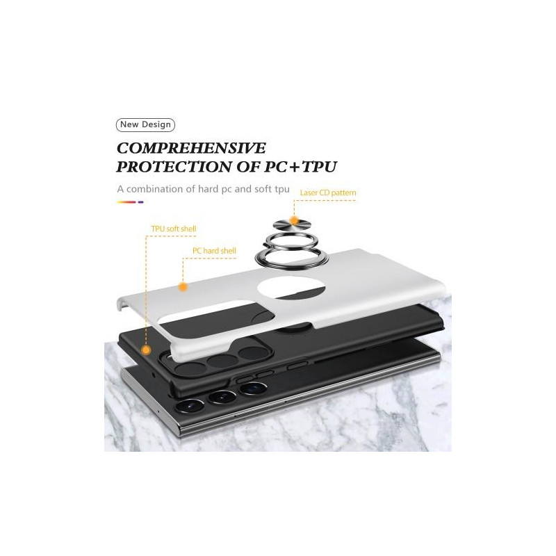 Hybridtelefonfodral heltäckande med ringformad kickstandsdesign för Samsung Galaxy S23 Ultra - Silver