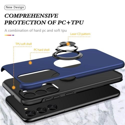 Hybridtelefonfodral heltäckande med ringformad kickstandsdesign för Samsung Galaxy S23 - Blå