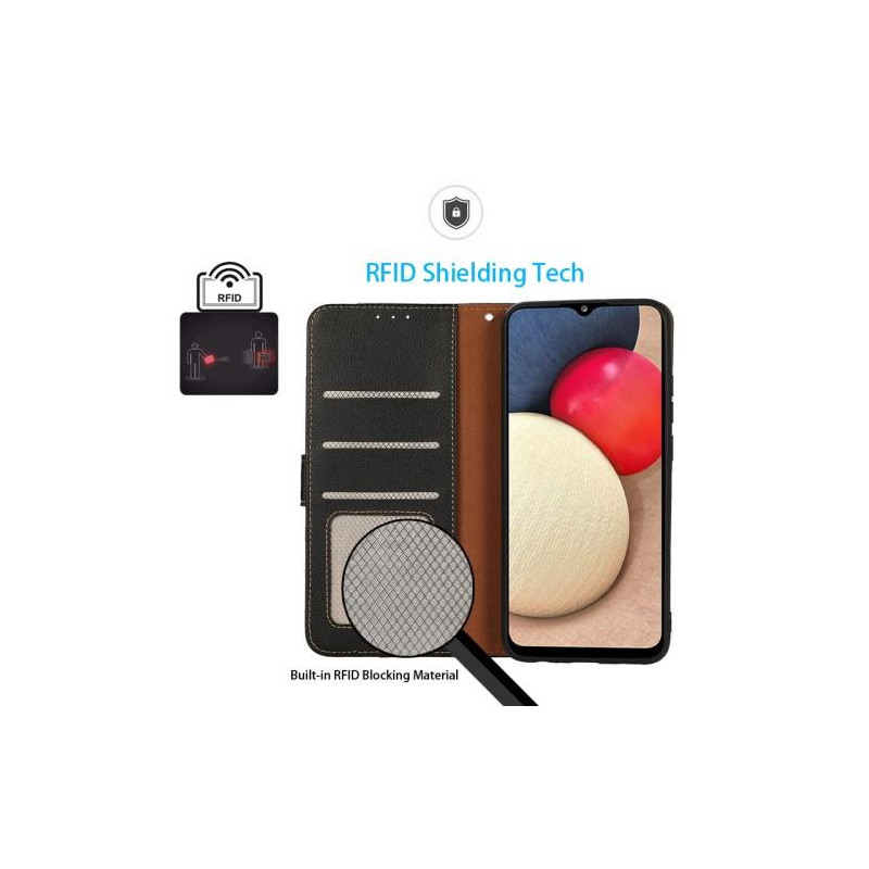 Detta fodral är tillverkat av litchi textur PU-läder som är slitstarkt, smidigt och mjukt. Slimfit TPU-material gör din telefon lätt att bära och enkel att installera. Den inbyggda kortplatsen blockerar effektivt signaler och skyddar ditt personliga kort från att svepa, även lätt att organisera dina kontanter.
