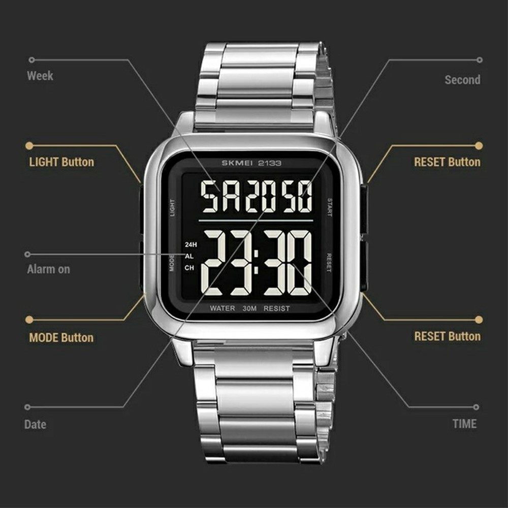 SKMEI 2133 Snygg digital klocka Student Stålrem fyrkantig elektronisk klocka - Svart 【Komfortabel rem i rostfritt stål】 Slitstark rem i rostfritt stål ger en bekväm passform, perfekt för dagligt slitage