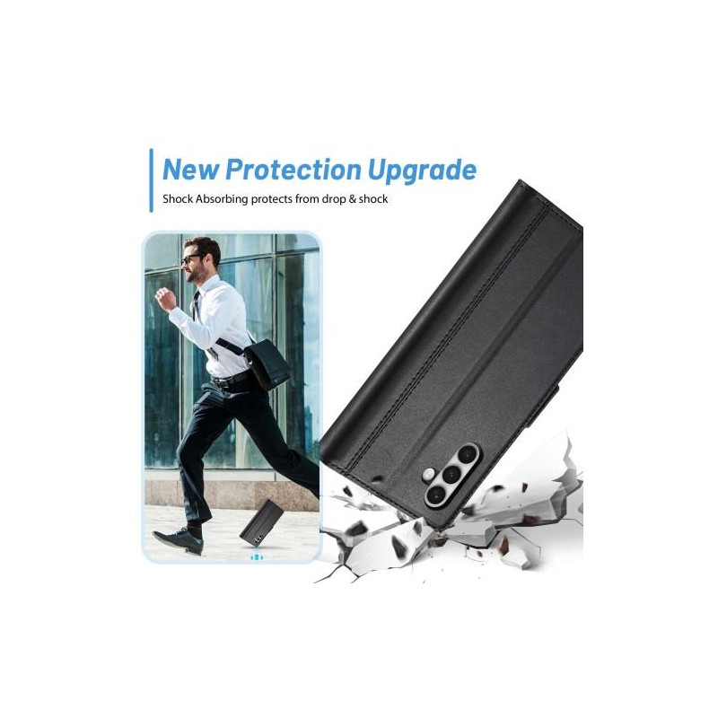 LC.IMEEKE Plånboksfodral för Samsung Galaxy S23, hopfällbart ställ PU-läder, starkt magnetiskt sugskyddsskydd - svart