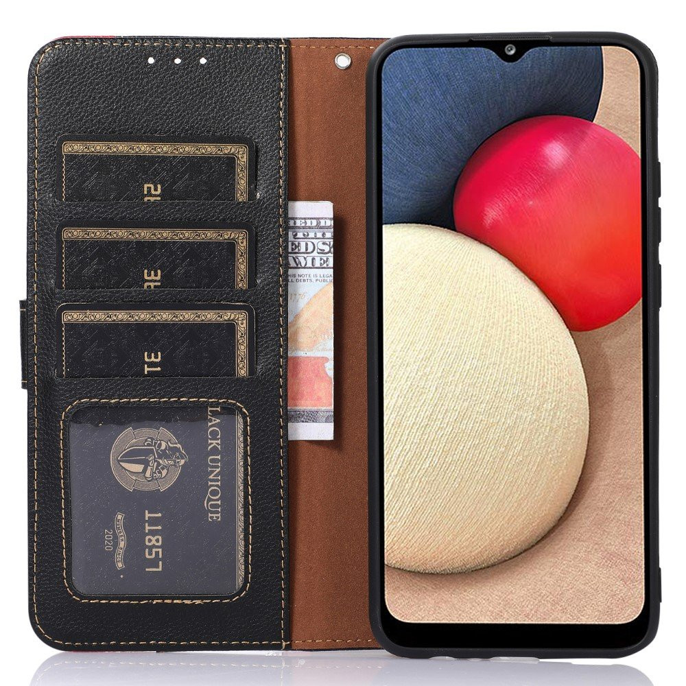 KHAZNEH Litchi Texture telefonfodral för Samsung Galaxy A16, PU-läder + TPU RFID-blockerande droppsäkert mobiltelefonfodral med stativplånbok Detta fodral är tillverkat av litchi textur PU-läder som är slitstarkt, smidigt och mjukt. Slimfit TPU-material gör din telefon lätt att bära och enkel att installera. Den inbyggda kortplatsen blockerar effektivt signaler och skyddar ditt personliga kort från att svepa, även lätt att organisera dina kontanter.