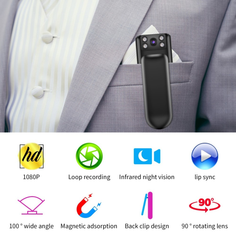 Infrared Night Vision 1080P Full HD Pocket Camera Bärbar Videoinspelare med Back Clip Full HD-kamera: 1080P högupplöst inspelning, lämplig för flera scener