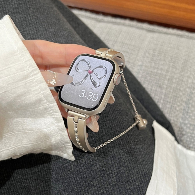 För A Watch Ultra 2 Ultra 49mm / 9 8 7 45mm / 6 5 4 SE (2023) SE (2022) SE 44mm / 3 2 1 42mm Watch Smycken Armband Alloy Armband - Starlight Klockremmen är tillverkad av högkvalitativt legeringsmaterial, high-end