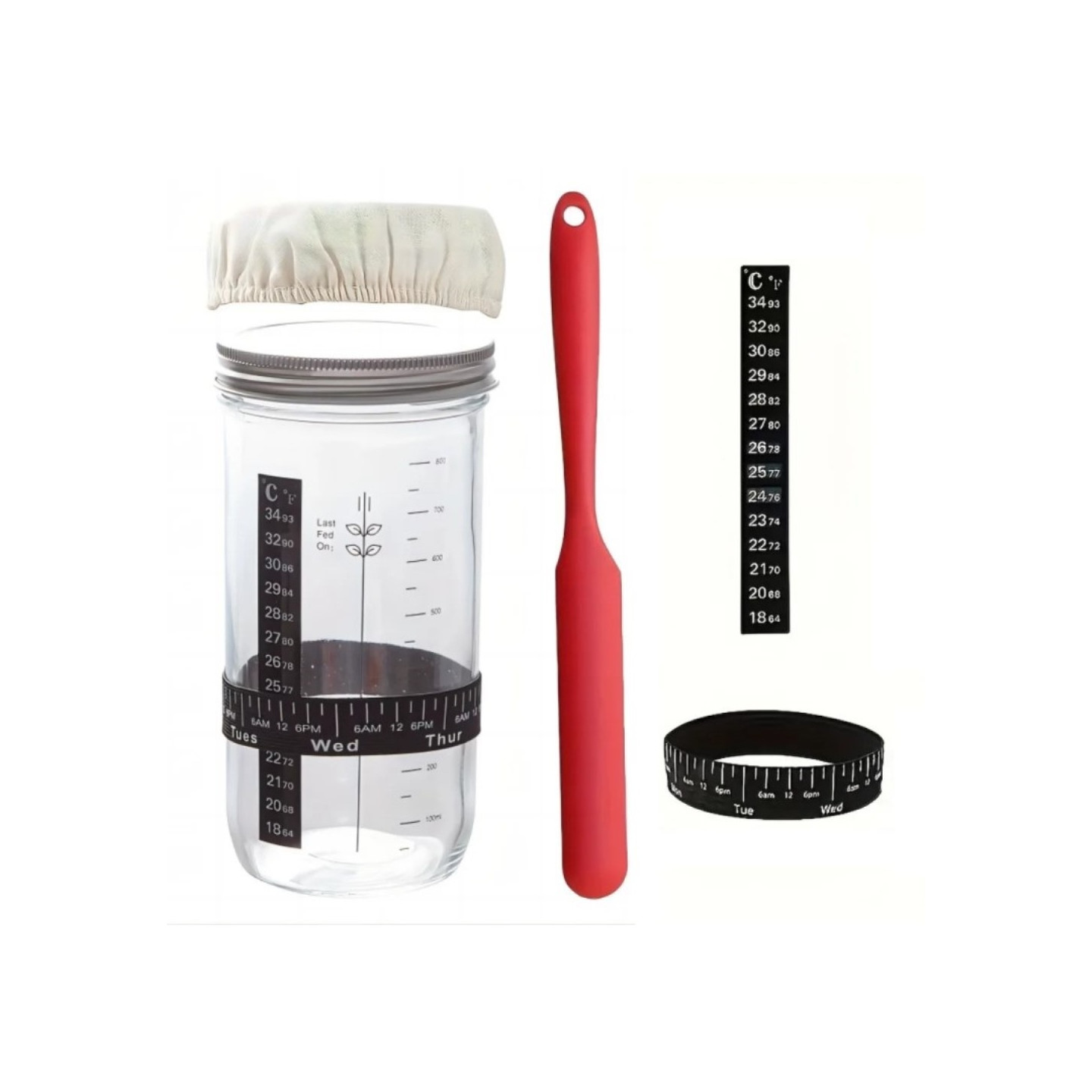 24 oz / 730 ml Surdegsjäsningsburk i klart glas Surdegsbaktillbehör för startbehållare [Kompletta tillbehör & enkel användning] Detta surdegsstartpaket är speciellt utformat för att göra startprocessen enklare och lämpar sig för amatörer och experter.