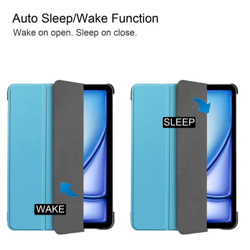 För iPad Air 11 (2024) Fodral Auto Väcka / Sova Tri-fold Ställning Tabletthölje - LjusBlå Detta fodral kännetecknas av delikat PU-läder, kombinerat med ett PC-innerfodral, fin kvalitet och ett frestande utseende. Tri-fold ställningsdesign ger en lämplig vinkel för dig att läsa, skriva och titta på videor, vilket förenklar ditt arbete och liv. Mikrofiberfoder är repbeständigt och smutsavvisande och skyddar din tablets skärm.