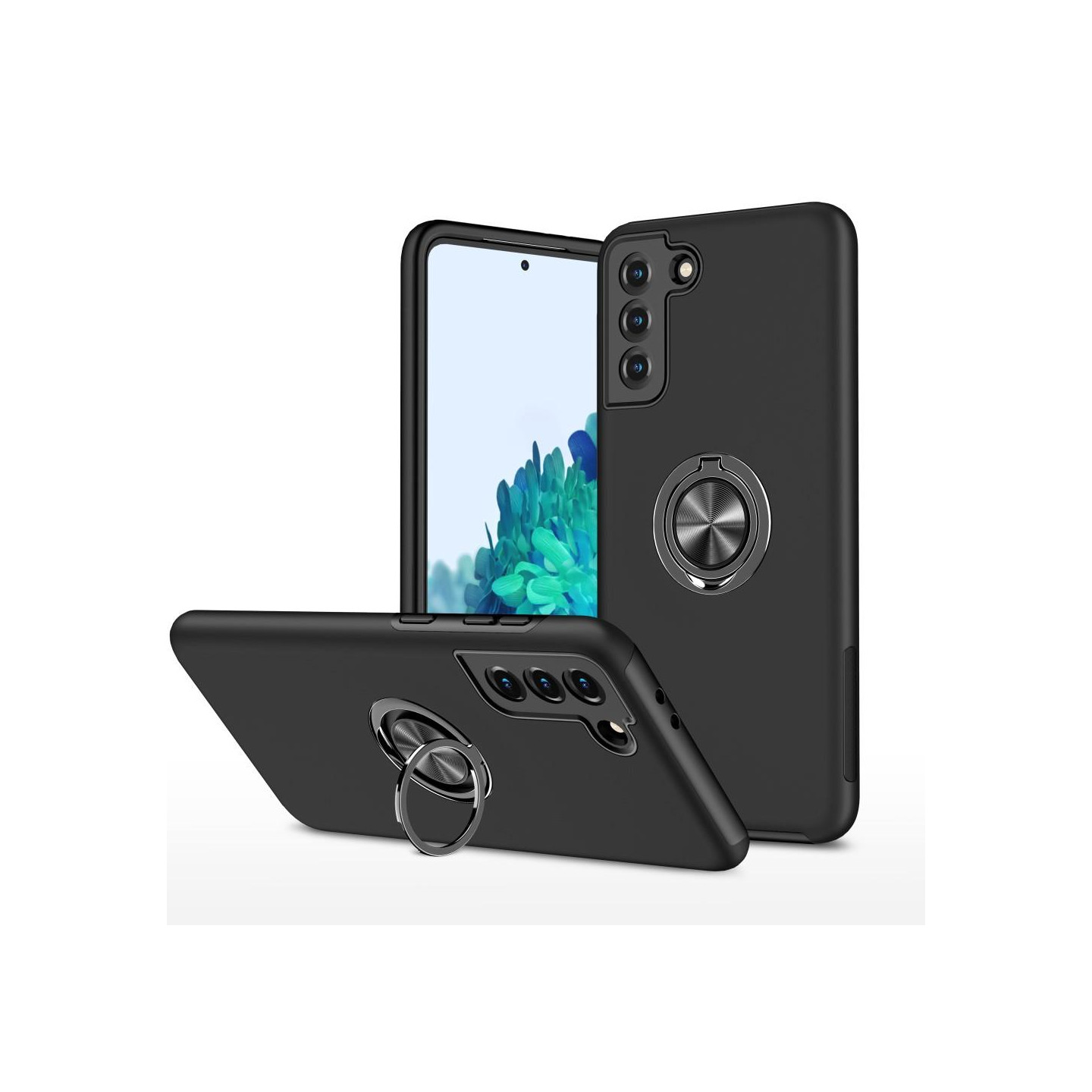 Till Samsung Galaxy S21 skal med Finger Ring och inbyggd plåt - Svart