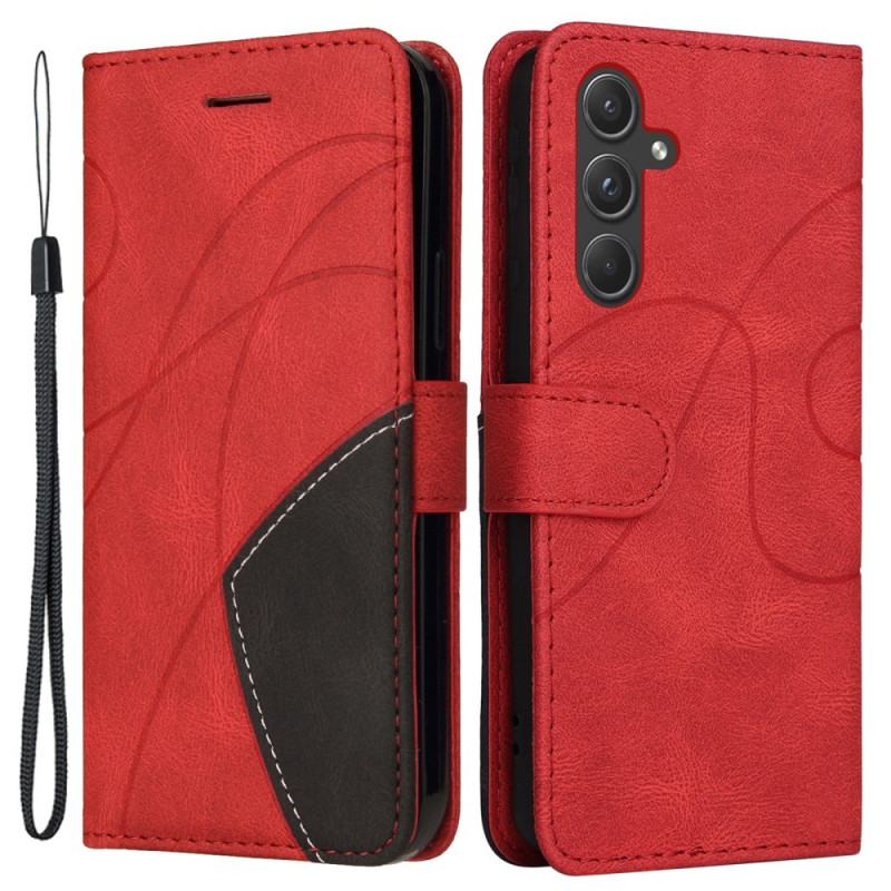 För Samsung Galaxy A55 KT Series-1 Dubbelfärgad fodral med rem - Röd