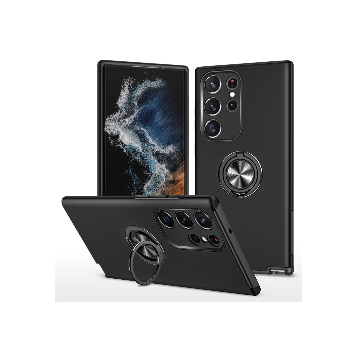Integrerad ringhållare möjliggör enkel enhandsmanövrering, kan också fungera som ett 360-graders roterande kickstand
