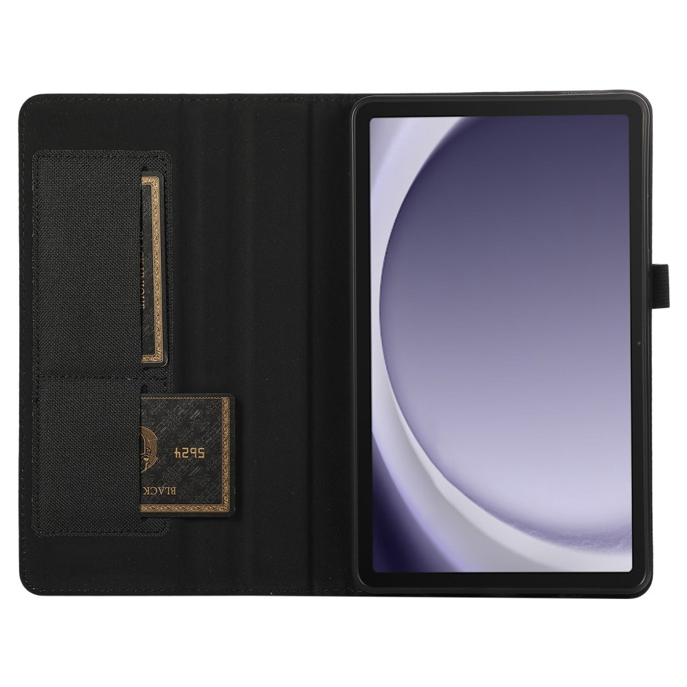 Samsung Galaxy Tab A9+ Vikbart stativ Korthållare Skyddsfodral Tygtextur - Svart