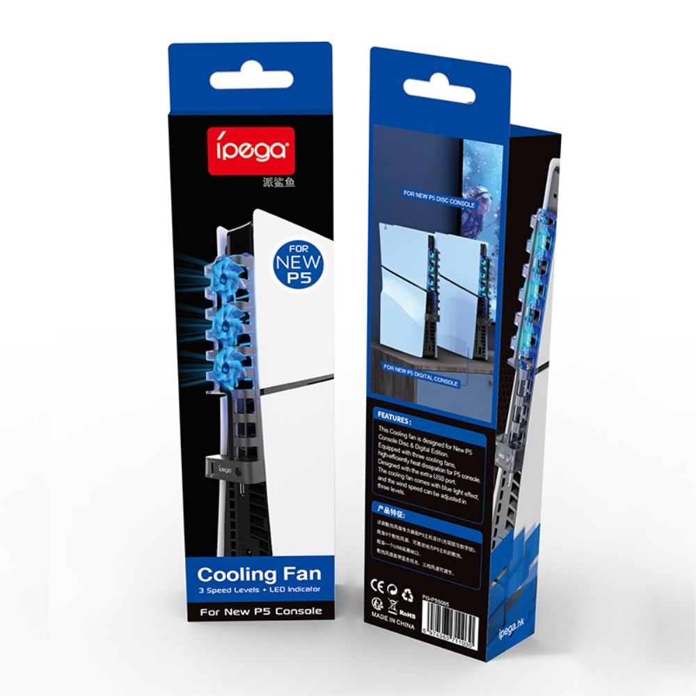 IPEGA PG-P5S005 För Playstation 5 Slim / PS5 Slim Spelkonsol Kylfläkt med USB-port + Ljus Denna produkt är lämplig för PS5 Slim digital version och optisk drivversion