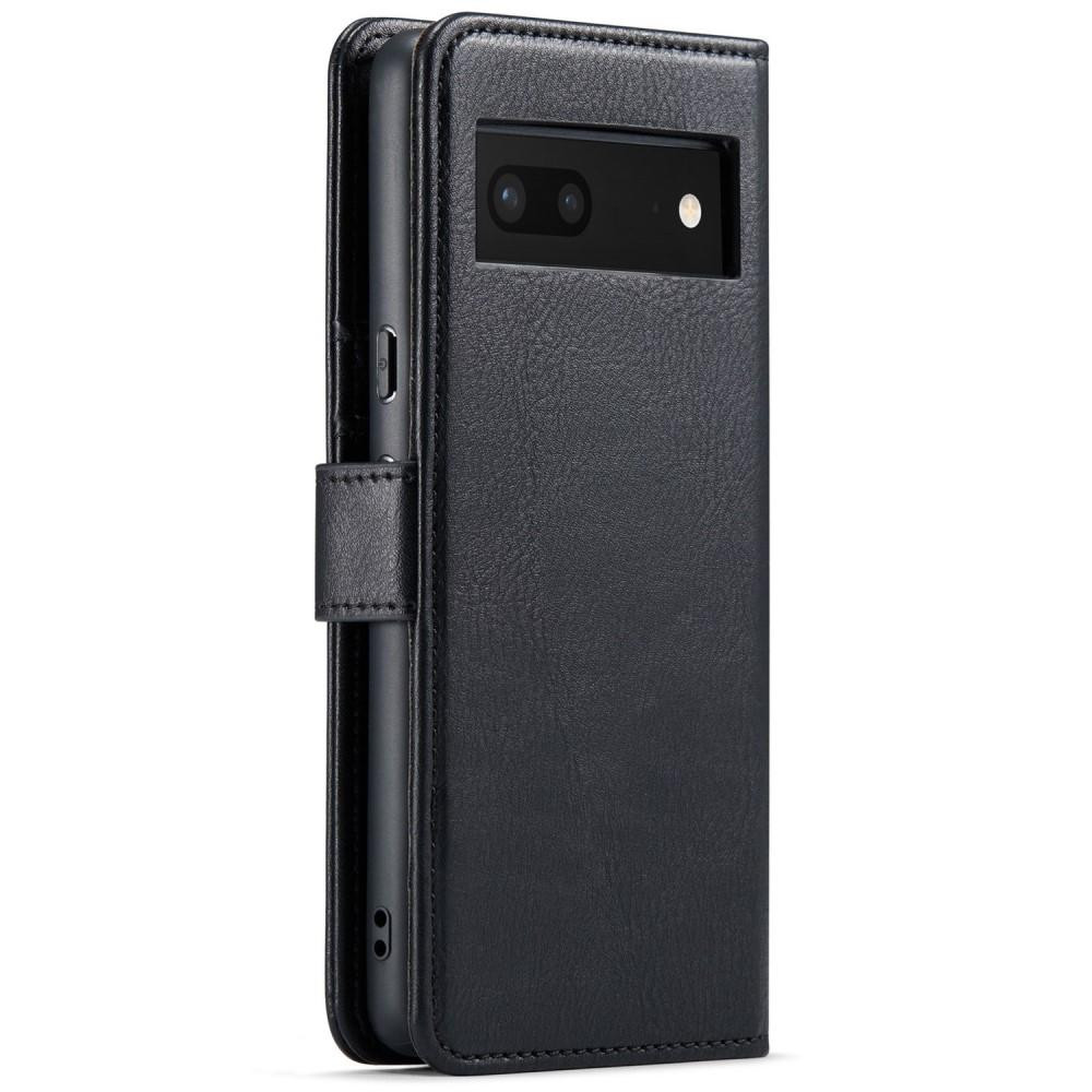DG.MING Split läderfodral för Google Pixel 7, stötsäkert, avtagbart mobiltelefonfodral med plånboksställ - svart