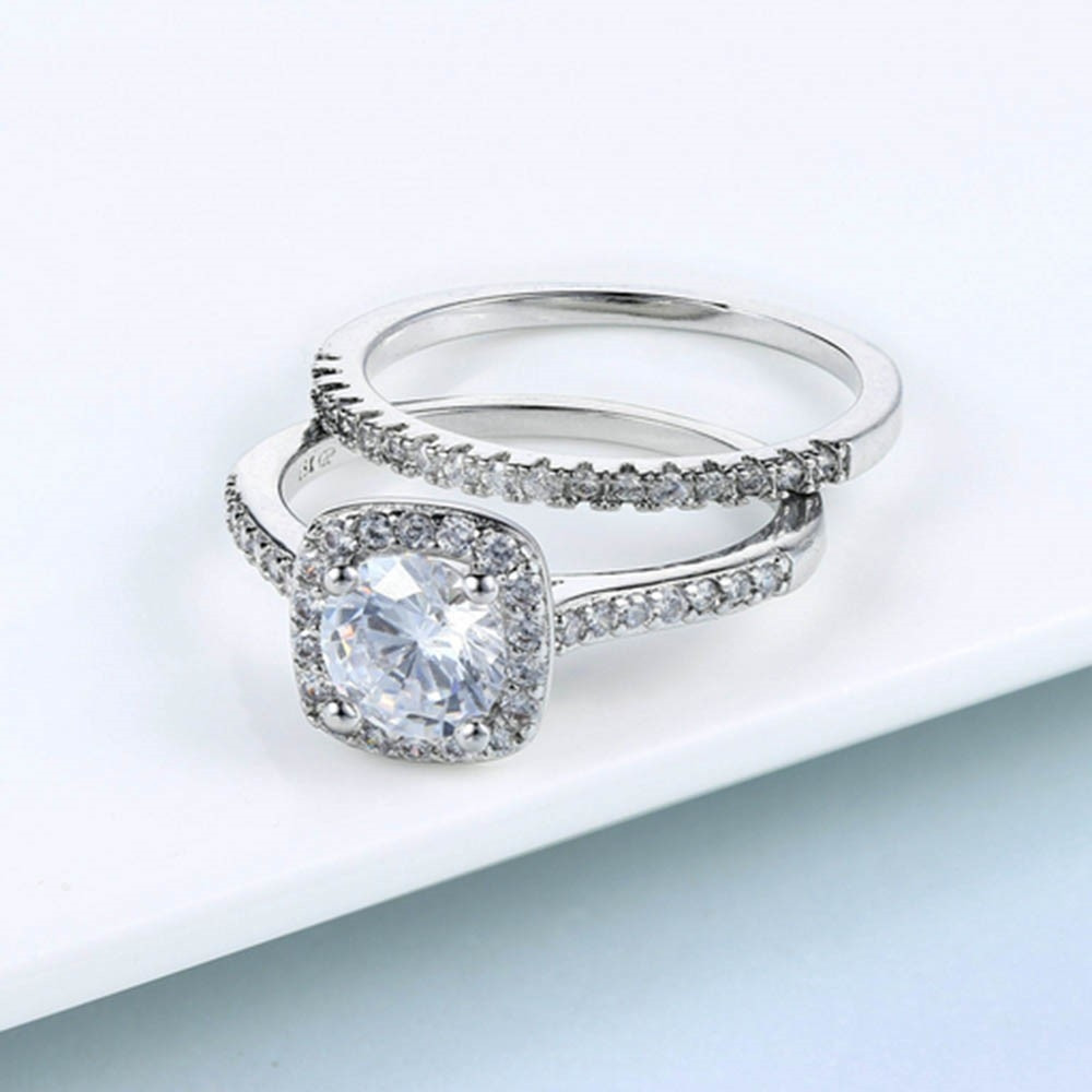 JZX12 2st Dam Ringar Set Elektropläterade Cubic Zirconia Stapelbara Ringar Tjejer Vigselringar - Storlek 8 / Silver Förlovningsringarna set för kvinnor, i 2 olika stilar, 2MM staplingsringar, tunna och vackra
