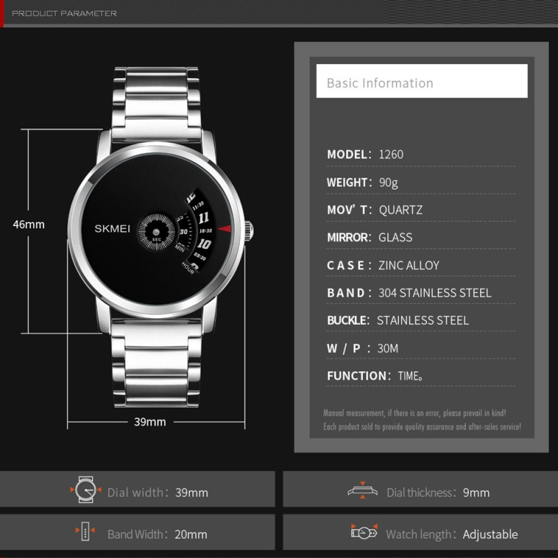 SKMEI 1260 Herrklocka Vattentät Casual Quartz Sport Watch - Silver Vardagsliv vattentätt, INTE lämplig för dykning, simning, snorkling, vattenrelaterat arbete