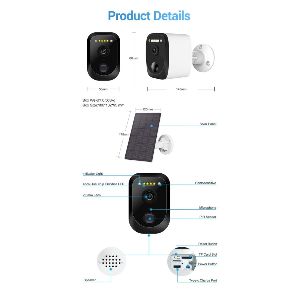 ESCAM QF370 3MP WiFi Kamera PIR Night Vision IP - kamera solpanel