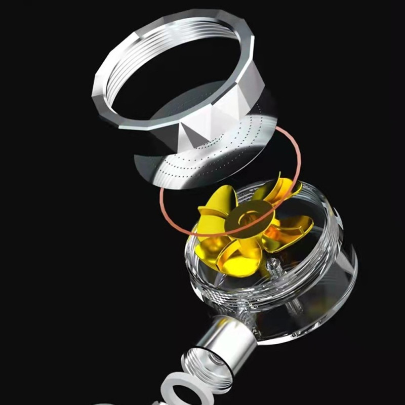 Högtrycksduschhuvud Handhållen turbofläkt 360-graders snurrvattenbesparande hydrojetduschhuvud med filter - guld Högkvalitativt miljövänligt tåligt ABS-material, lätt att installera och rengöra, kan stödja 360-graders rotation av horisontella vinklar och 60-graders rotation av vertikala vinklar