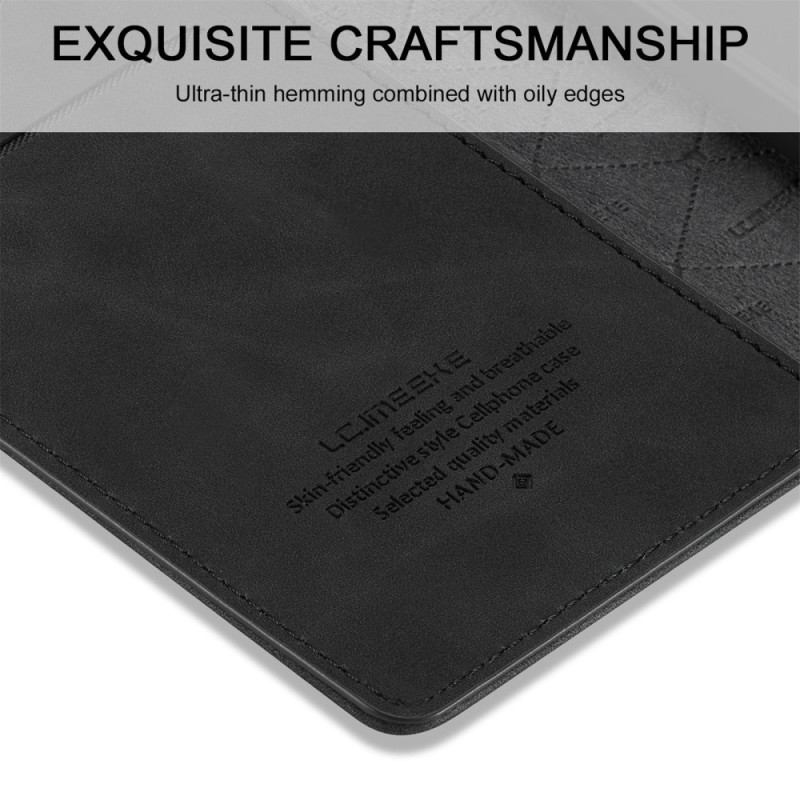 LC.IMEEKE magnetiskt telefonfodral för iPhone 15 Plus , mikrofiberläderställ plånboksfodral - svart Tillverkad av mikrofiberläder och TPU-material, dubbla lager av skydd