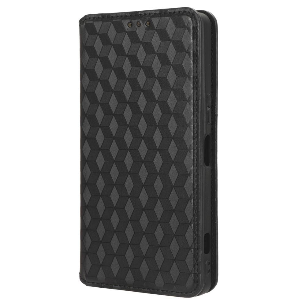 Til Sony Xperia 10 V Printed Rhombus Leather Cover Wallet Stand Magnetisk automatisk lukkende telefonbeskyttelsesetui - sort Lavet af kvalitets TPU og PU-læder, uklageligt, glat og blødt