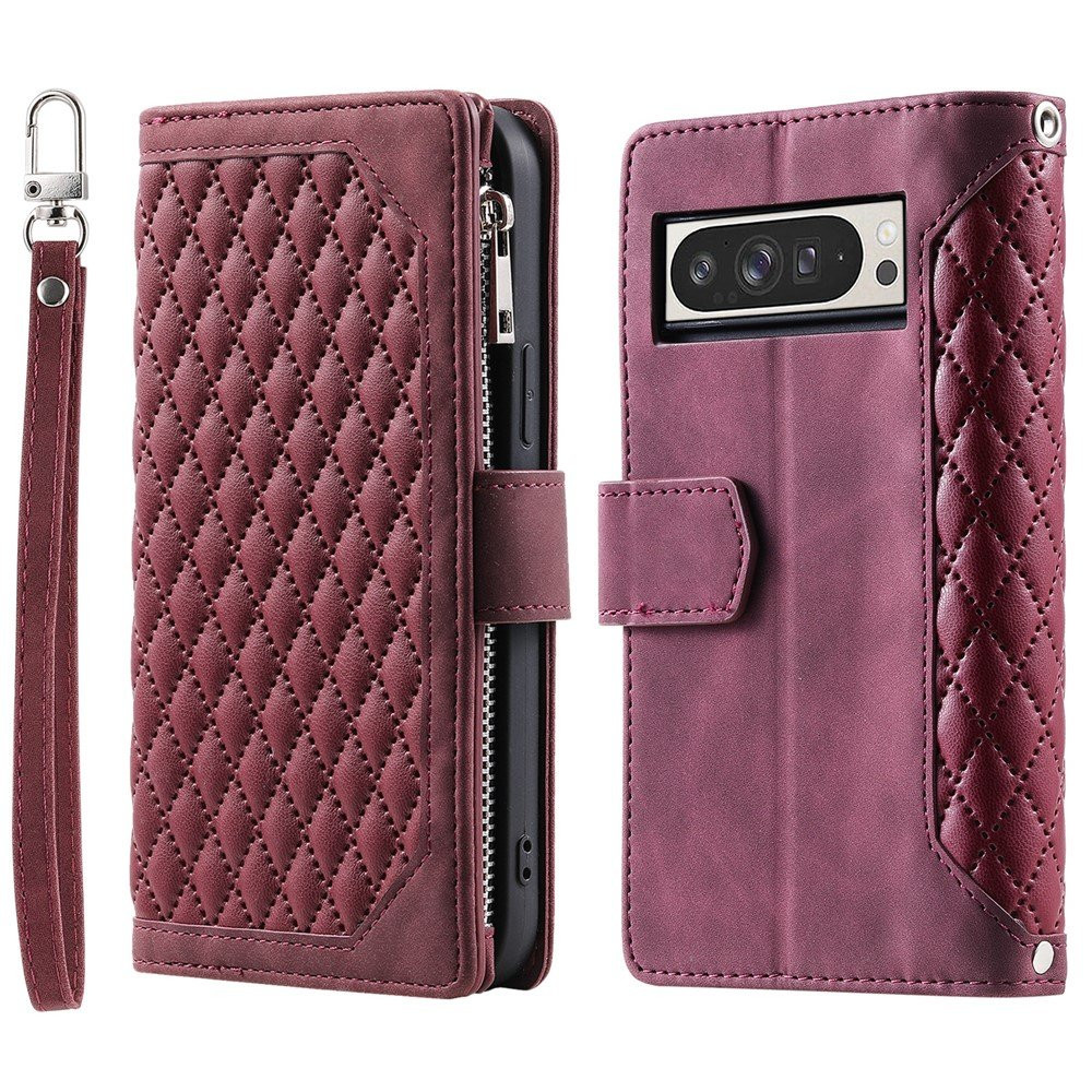 Til Google Pixel 10 Pro XL Zipper Wallet Case Rhombus Stitching Line PU Læder Telefoncover