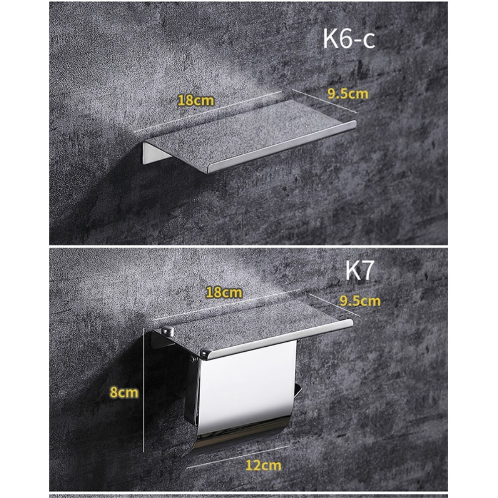 Toiletpapirholder til badeværelse Vægmonteret med hylde - K6/Sølv/Bormontering