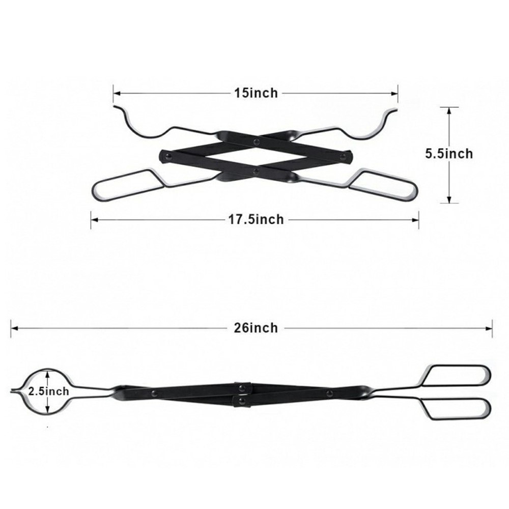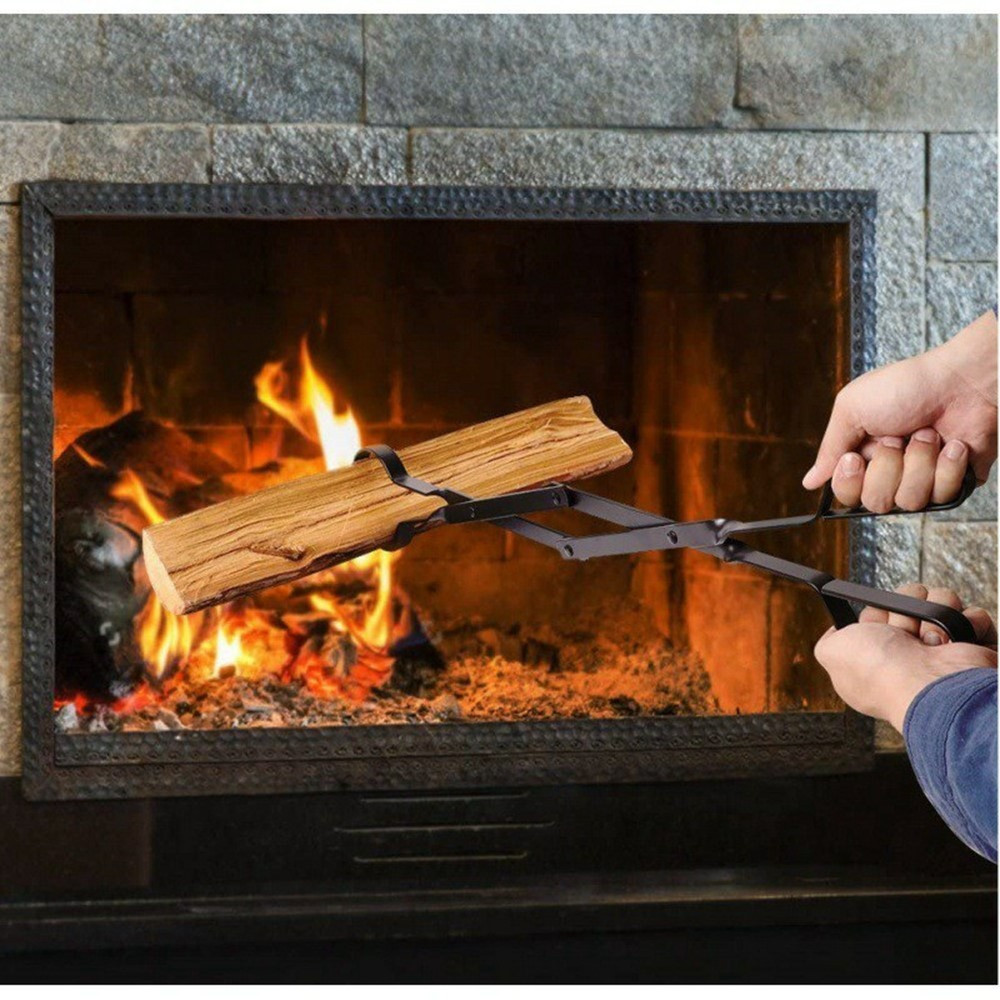 Indendørs udendørs træ Ståltang Foldepejs Brandsikker træklemme 【26-tommer lang rækkevidde】 Denne tang er 26 tommer lang og giver en sikker afstand fra varmen, mens den håndterer brændende træstammer effektivt