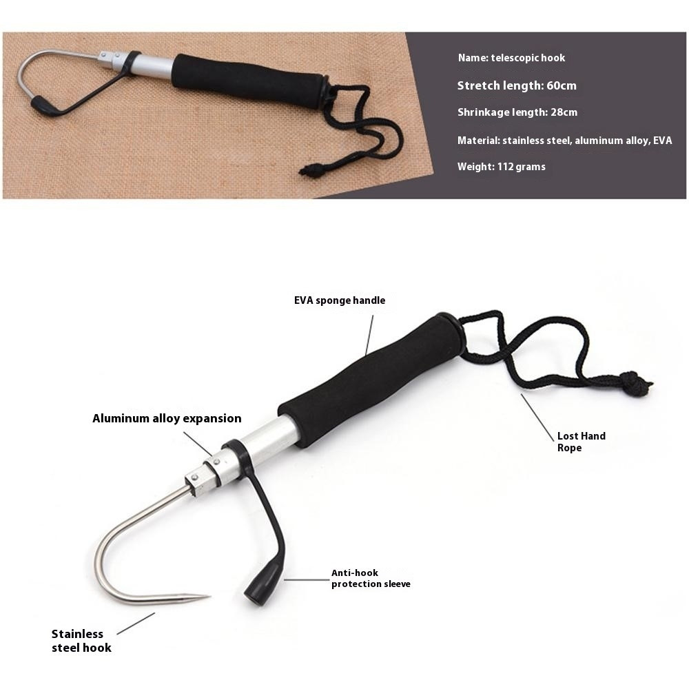 Teleskopisk krog fiskekrog Skridsikkert håndtag Spydkrog Fiskegreb Værktøj